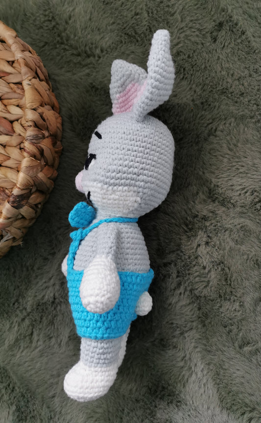 Rabbit Toy in Overalls - Adorable Handmade Amigurumi Bunny for Kids